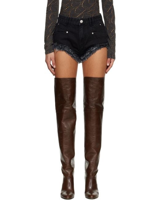 Non-stretch denim shorts. · Mid-rise · Belt loops · Four-pocket styling · Zip fly · Raw edge at hem · Logo patch at back waistband Supplier color: Faded Black Colour: black