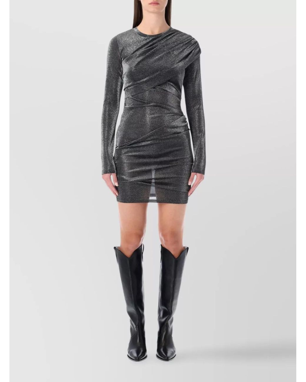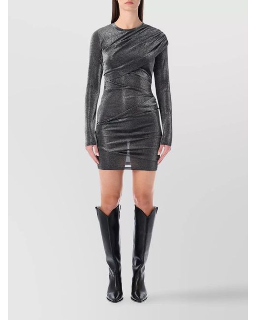 Women's Grey Metallic Draped Long-Sleeve Mini Dress