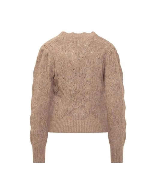 Elevate your style with this Marant étoile round-neck knitwear featuring multicolor beige open knit puff sleeves. Made with 100% fabric, this piece is a must-have for the fashion-forward female. Washing instructions: Follow manufacturer guidelines. Origin: Made in China.