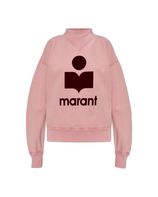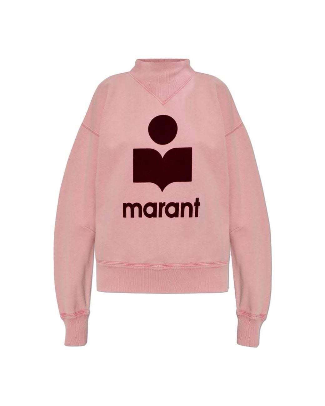 Marant Etoile Moby Sweatshirt combines Parisian simplicity with a relaxed silhouette for an elevated everyday layer. It stands out for its high mock neck and a bold central logo that adds a designer signature to casual looks. Key attributes: Pink | Cotton blend | Mid-weight | Slight stretch | Durable fabric | Slip-on style | Ribbed cuffs and hem | Stand-up mock neck with V-shaped seams | Dropped shoulders | Long sleeves | Contrasting bold logo at centre front | Dimensions & fit: Model height: 176 cm | Bust: 85 cm | Waist: 60 cm | Hips: 89 cm | Model is wearing size: 36 | Relaxed fit | Dropped shoulder | Composition & care: 88% cotton | 12% polyester | Machine wash on a gentle cycle, inside out, at a maximum temperature of 30°C. Colour: pink