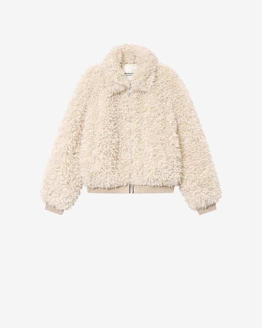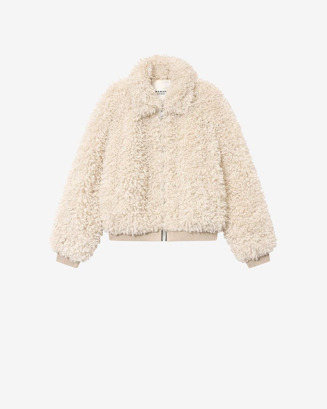 Short bouclé feel faux fur coat Turn-down collar Long sleeves Slit side pockets Zipper with engraved slider Ribbed finishes Straight cut Style: MA0518FAD1A01E23EC TAYMA Color: ecru; Size: 34, 36, 38, 40, 42, 44 Colour: white
