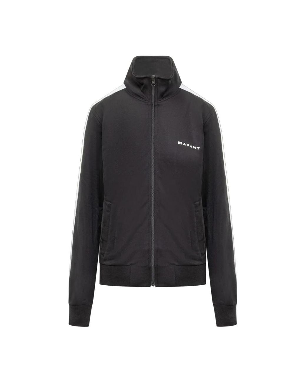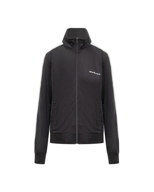 Isabel Marant Ronny Sweatshirt is a zip-through long-sleeved sweatshirt with a high collar and printed logo, designed for everyday layering and casual wear. Key attributes: Black | Cotton-polyester blend | Zip-through closure | Two side pockets | High collar | Long sleeves | Ribbed hems | Printed logo on front | Composition & care: 60% polyester, 40% cotton Colour: black
