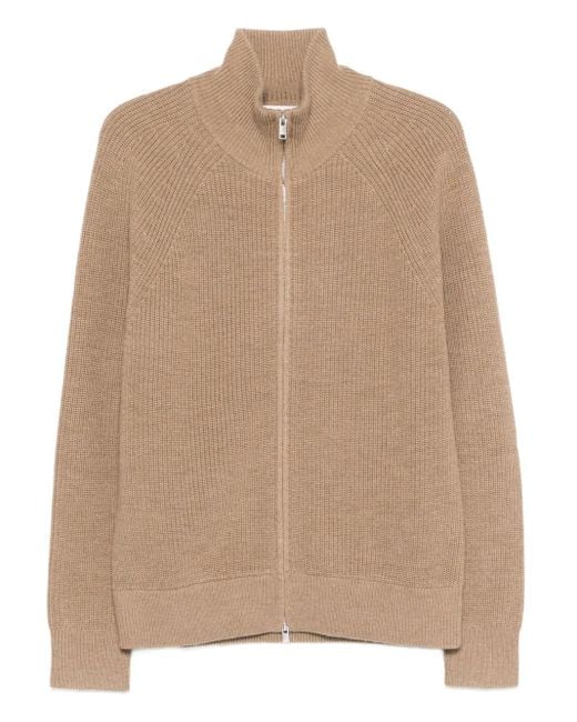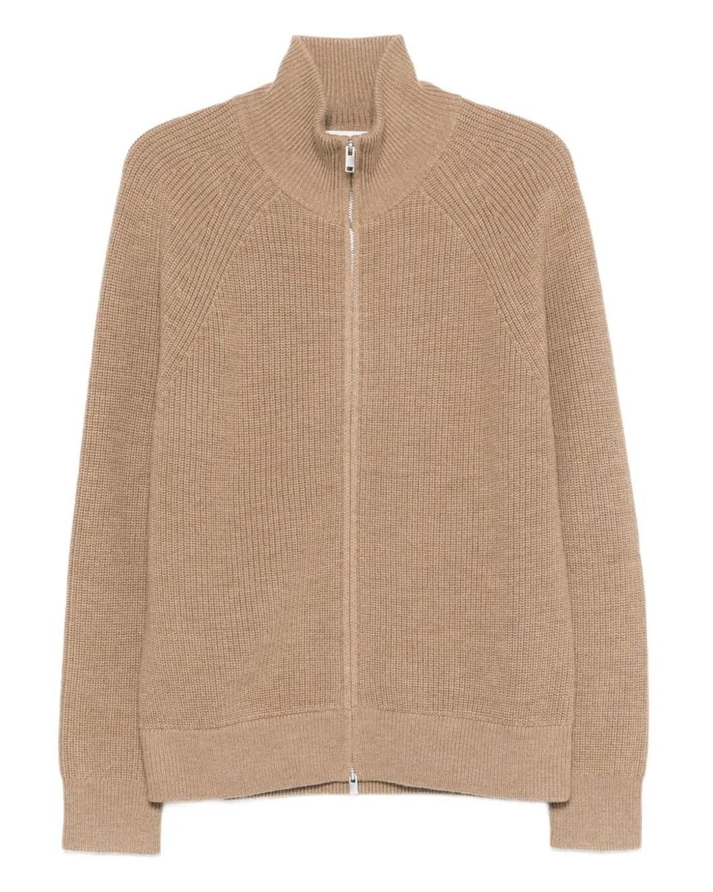 Light brown zip fastening high neck raglan sleeves Size: M. Gender: Male. Material:Merino. Colour: natural