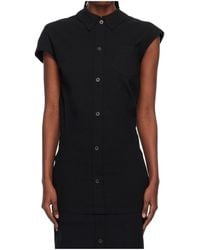 Go to FARFETCHBlack short sleeves collared neckline button fastening straight hem concealed zip fastening Size: 2. Gender: Female. Material:Paper/Cotton/Nylon/Polyurethane. Colour: black