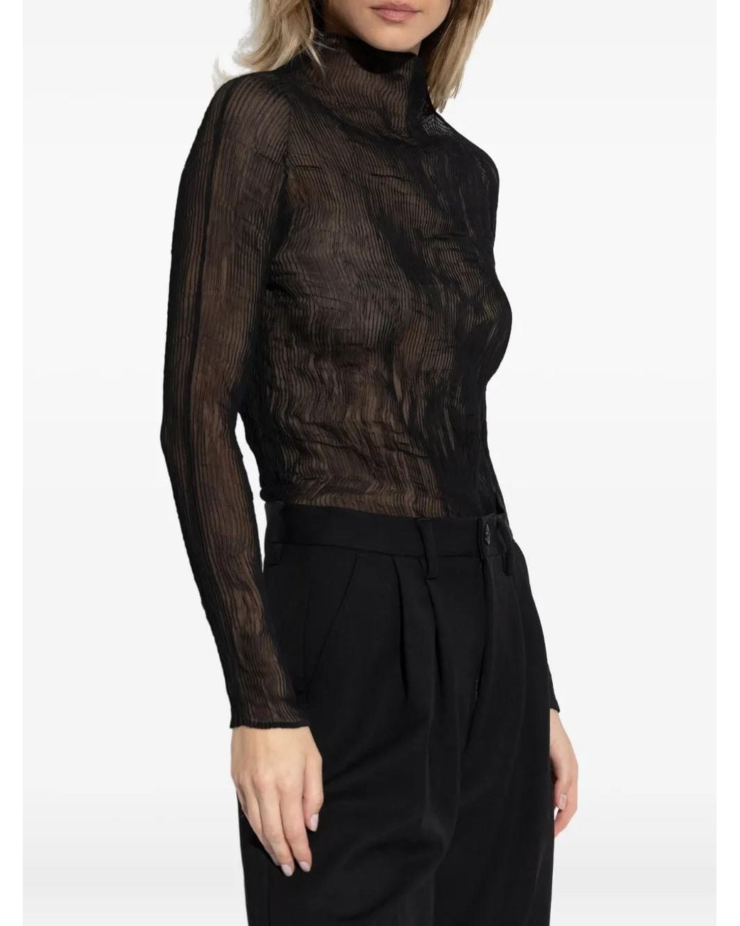 Black textured finish high neck long sleeves Size: 2. Gender: Female. Material:Polyester. Colour: black