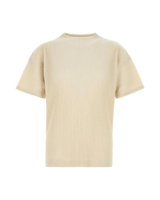 Issey Miyake Monthly Colours : March is a short-sleeved mock-neck top from the Homme Plissé line, designed for lightweight, quick-drying wear. Its pleated polyester construction offers portable comfort and a textured look suited to everyday and travel wardrobes. Key attributes: Beige | Polyester | Quick-drying | Lightweight | Easy care | Mock neck | Short sleeves | Ribbed texture | Neckline slit | Dimensions & fit: Size 2 — Length: 64.0 cm; Sleeve length: approx. 56.5 cm | Size 3 — Length: 67.0 cm; Sleeve length: approx. 59.0 cm | Size 4 — Length: 70.0 cm; Sleeve length: approx. 61.5 cm | Composition & care: 100% Polyester | Machine wash cold, gentle cycle; Non-chlorine bleach only if necessary; Do not tumble dry; Line dry in the shade; Do not iron; Do not dry clean; Mild professional wet-cleaning; Use a laundry net; Wash with like colours. Colour: natural