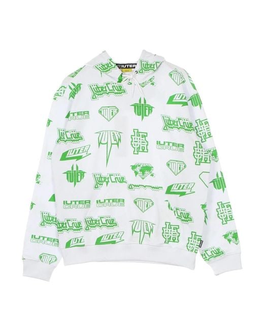 Stay comfortable and stylish in this Iuter Long Sleeve Brushed Sweatshirt for men. Featuring an adjustable drawstring hood, front kangaroo pocket, ribbed cuffs and bottom, and the iconic Iuter logo printed all over. Made from 100% cotton fabric. Hand or machine washable. Available in a regular fit. Colour: green