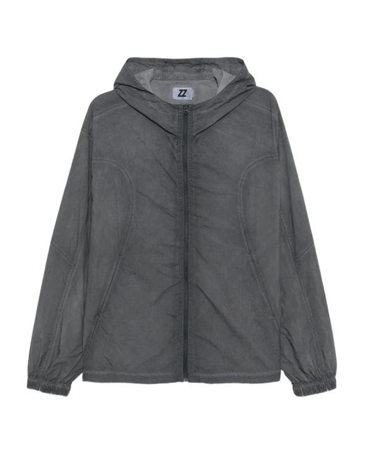 Men's Grey Embroidered-Slogan Hooded Jacket