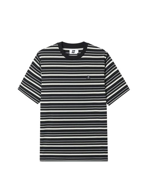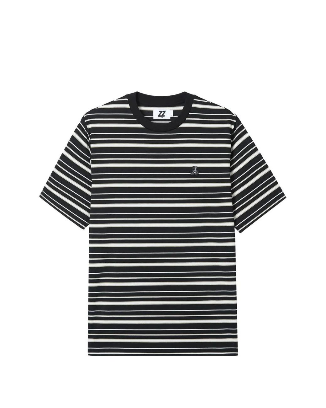 Men's Black Striped Bear-Detail T-Shirt