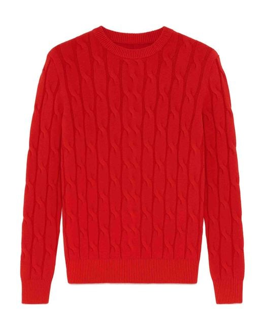 Ribbed trim Cable knit Regular fit Colour: red