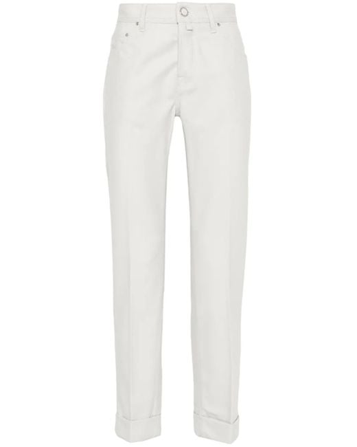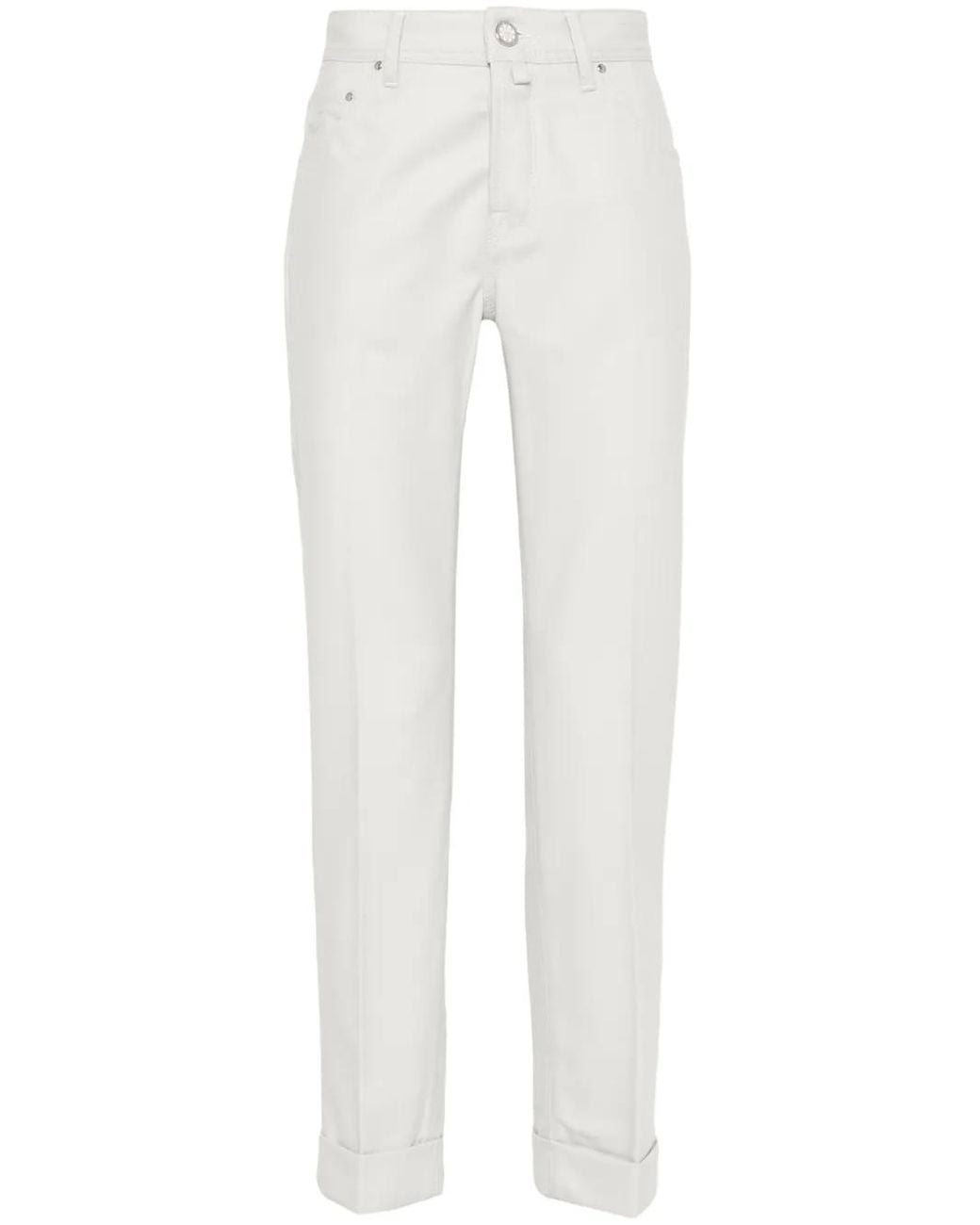 Light grey virgin wool non-brushed fleece concealed front button fastening mid-rise belt loops classic five pockets embroidered logo to the front pressed crease logo patch to the rear slim cut turn-up hem includes a bandana Size: 31. Gender: Male. Material:Virgin Wool/Cotton/Polyester. Colour: white