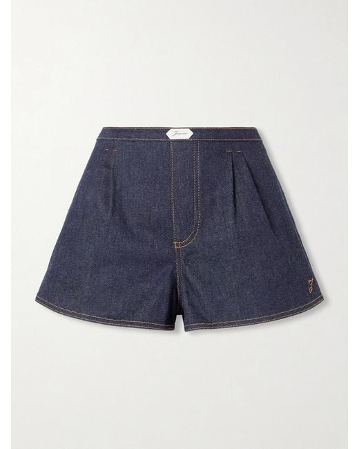 Women's Blue Amelo Embroidered Pleated Denim Shorts