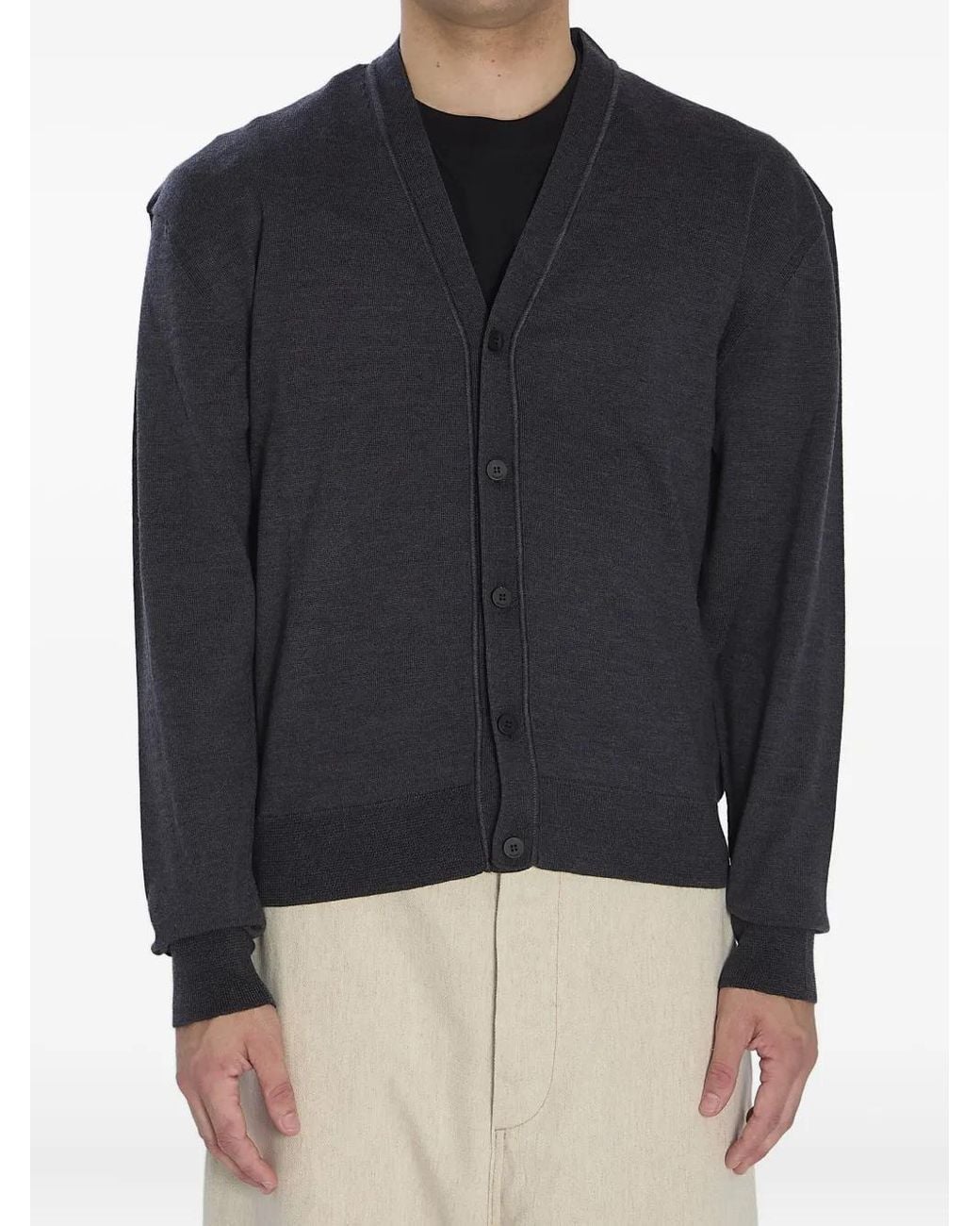 Grey V-neck button front ribbed collar ribbed cuffs ribbed hem embroidered logo Size: XS. Gender: Male. Material:Cashmere/Polyamide.