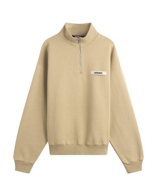The Jacquemus Grosgrain zip sweatshirt elevates a wardrobe essential with the label’s signature minimalism. Cut from cotton fleece, it features a clean quarter‑zip silhouette accented by grosgrain tape and subtle branding. Relaxed, refined, and effortlessly wearable, it channels that unmistakable Jacquemus ease. 100% Cotton, ½ Zip Closure, Ribbed Cuffs & Hem, Woven Brand Tab, Style Code: 25ESSM00313AJ00174-180, Shop All Men's Jacquemus Sweatshirts, Shop All Men's Sweatshirts, - Jacquemus Men's Grosgrain Zip Sweatshirt Dark Beige