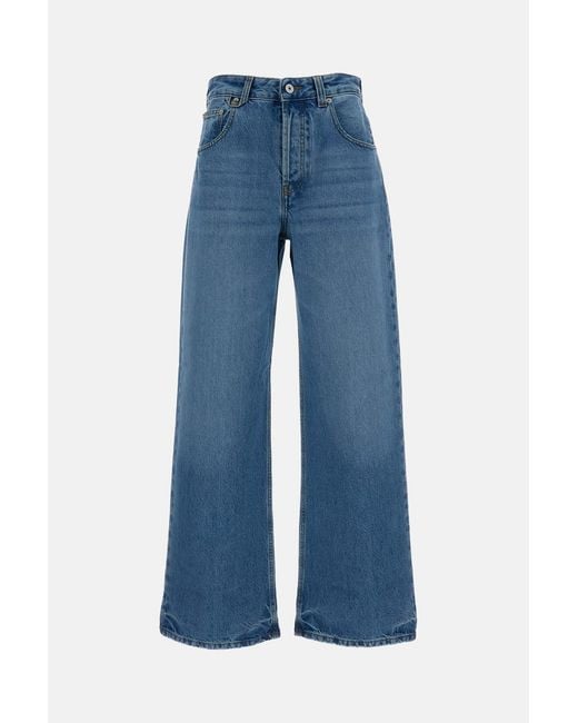 Mid-rise waist Indigo-washed denim Long, wide-leg silhouette Signature "J" belt loop Five-pocket design Metal studs and rivets Button fly fastening Logo detail above the back pocket Color: blue Made in ItalyComposition: 65% Polyester, 35% Cotton Colour: blue
