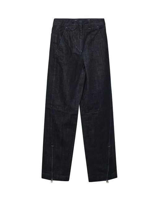 -Made of cotton -High-waisted -Long curved leg - J loop -Zip fastening -Four pockets, including two cargo -Front zip on each leg -Contrasting stitching and reinforcement stitching -Logo details -Made in Italy -The size shown in the photo is 23 -Color: Dark Navy