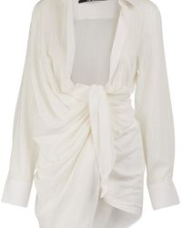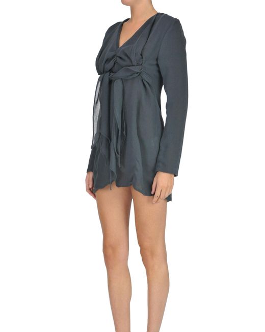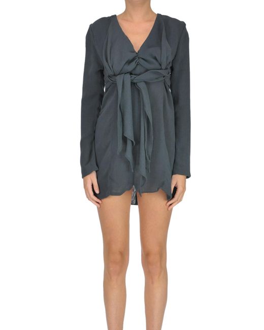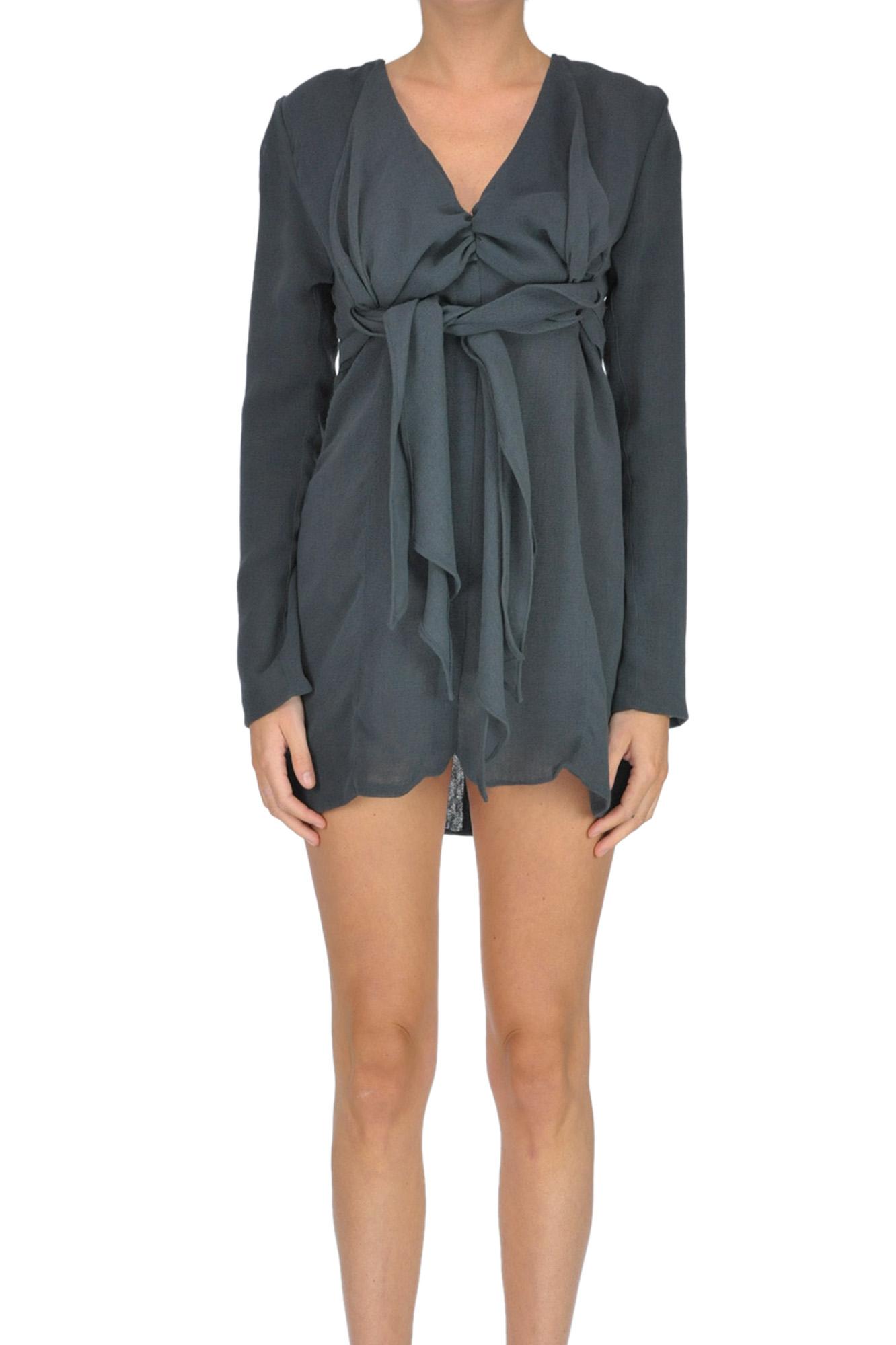 Le Souk' mini dress, draped roungh fabric, V-neckline, long sleeves, zip-fastening at back. COMPOSITION: 55% Polyester 45% Wool. Dry clean. Colour: grey