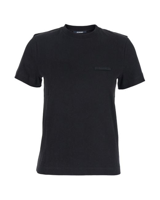 Women's Black 'Le T-Shirt Gros Grain' Crewneck T-Shirt With Logo Patch On The Front