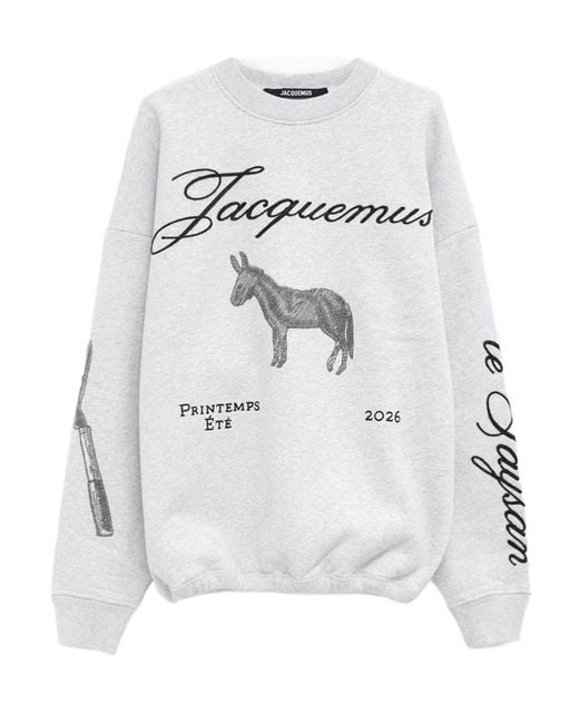 Features a patterned design, long sleeves, a round neckline, and ribbed knit cuffs and hem. Colour: white