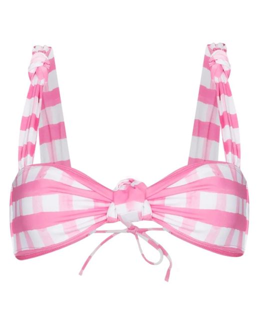 Pink/white stretch-recycled polyester check print knot detailing rear tie fastening wide shoulder straps Be mindful to try on swimwear over your own garments. Size: XXS. Gender: Female. Material:Spandex/Elastane/Recycled Polyester. Colour: pink