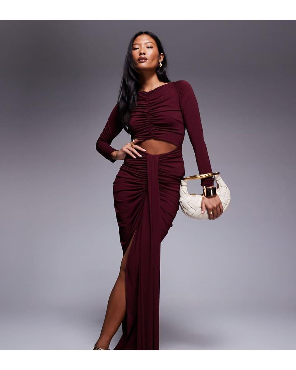 - Slinky Jersey Maxi Dress With Cut Out And Ruched Details