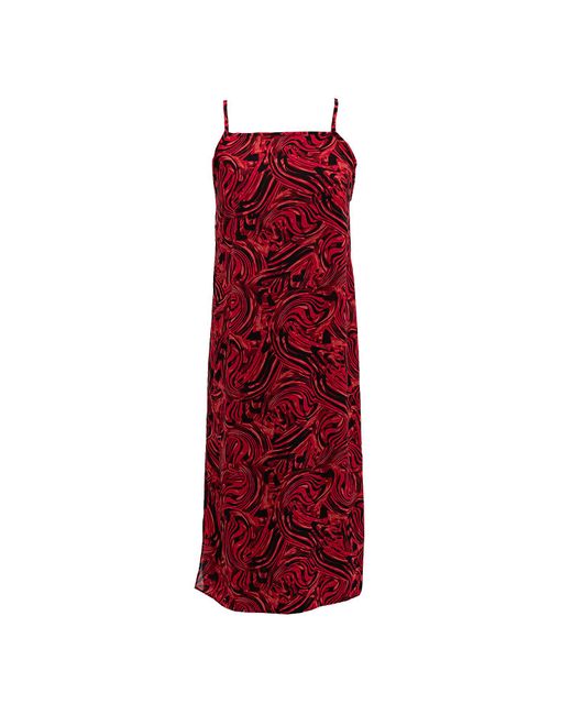 Women's Red Lava Print Chiffon Side-Split Staight-Neck Cami Top