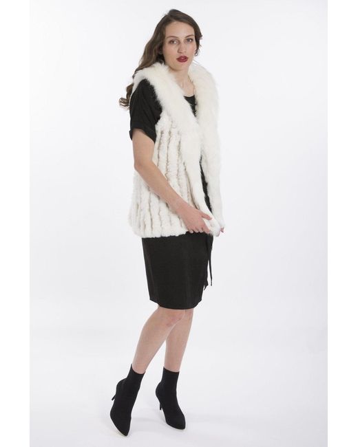 Women's White Hand Knitted Luxury Faux Fur Gilet With Suede Base