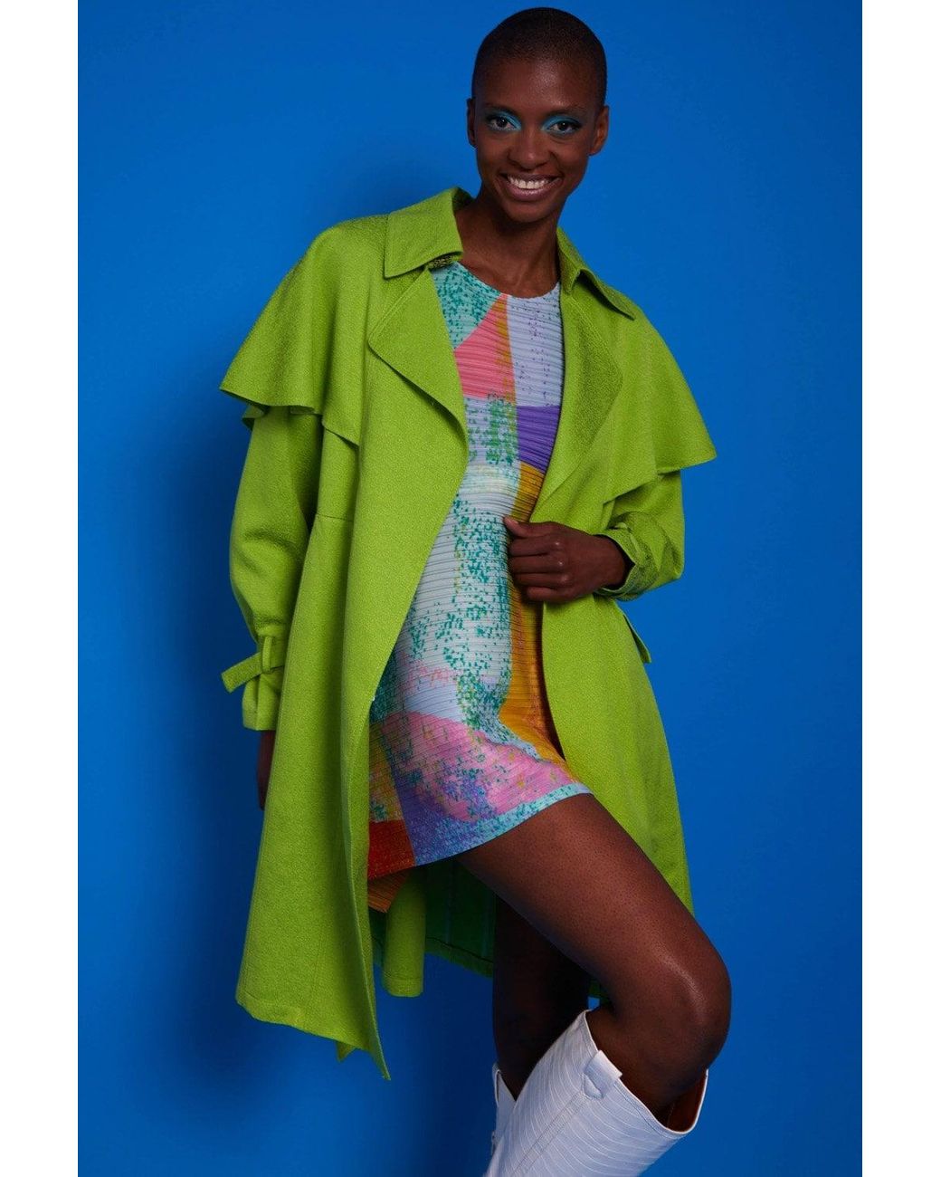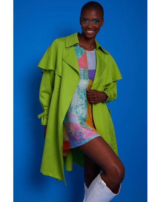A classic staple re-vamped with Jayley Colour and love our fabric to bring you your next statement trench coat. - Features belt - Pockets - Classic Lapels - Storm Flap 20% Tencel 80% Viscose Colour: blue