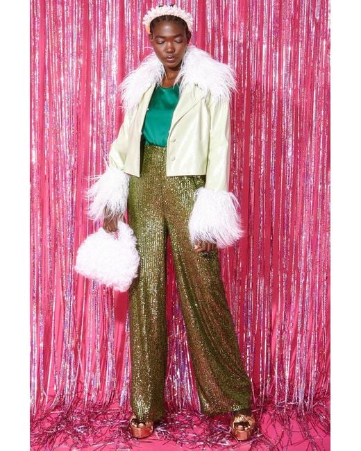 - Mint And Faux Leather Biker Jacket With Mongolian Fur Cuf