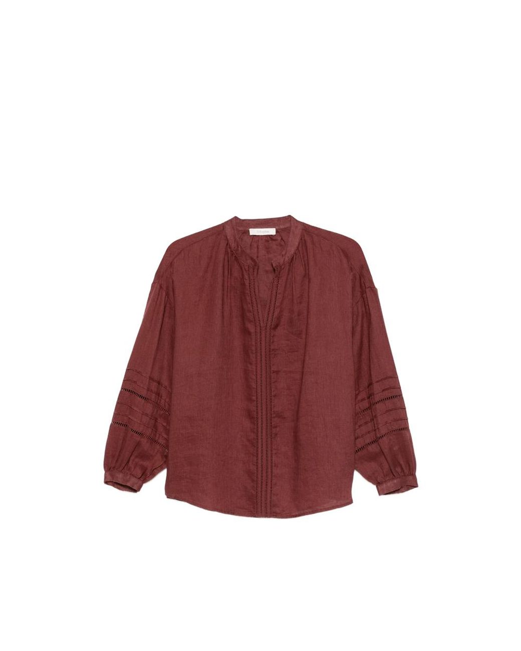 Brown perforated detailing gathered sleeves mandarin collar Colour: red
