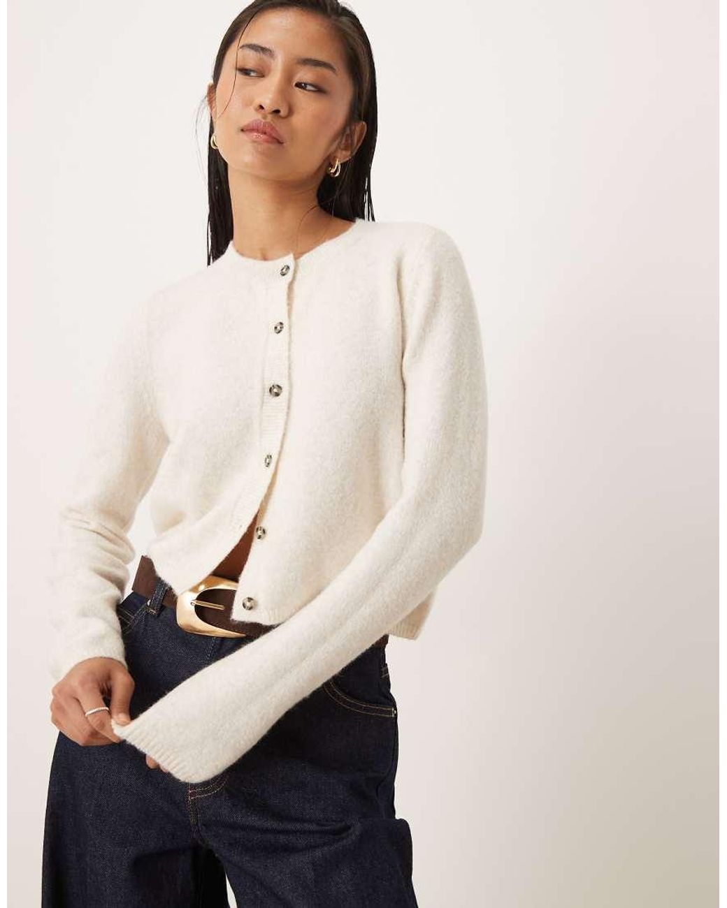 Jumpers & Cardigans by JDY Crew neck Button placket Long sleeves Regular fit. Polyester/Acrylic/Wool/Elastane. Colour: natural