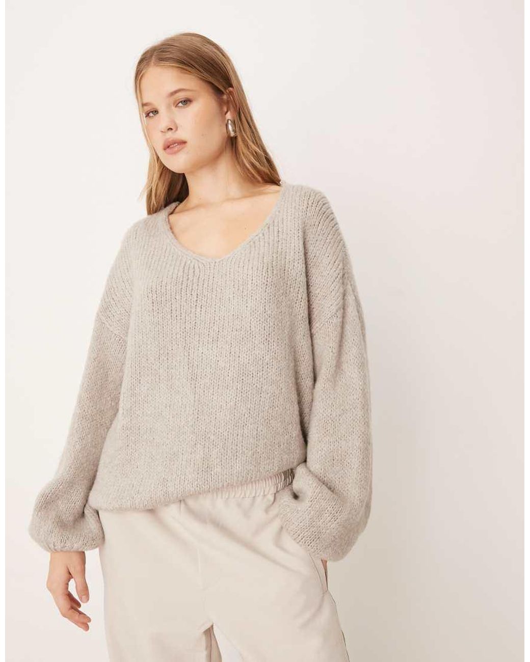 Jumpers & Cardigans by JDY Plain design V-neck Drop shoulders Ribbed trims Oversized fit. Acrylic/Polyester. Colour: natural