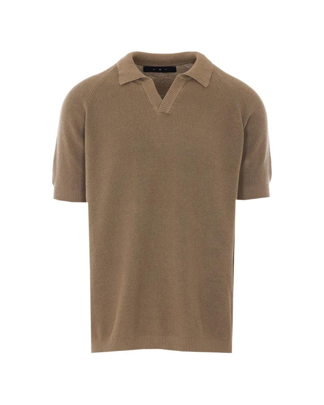 Brown cotton knitted construction V-neck short sleeves Size: M. Gender: Male. Material:Cotton. Colour: natural