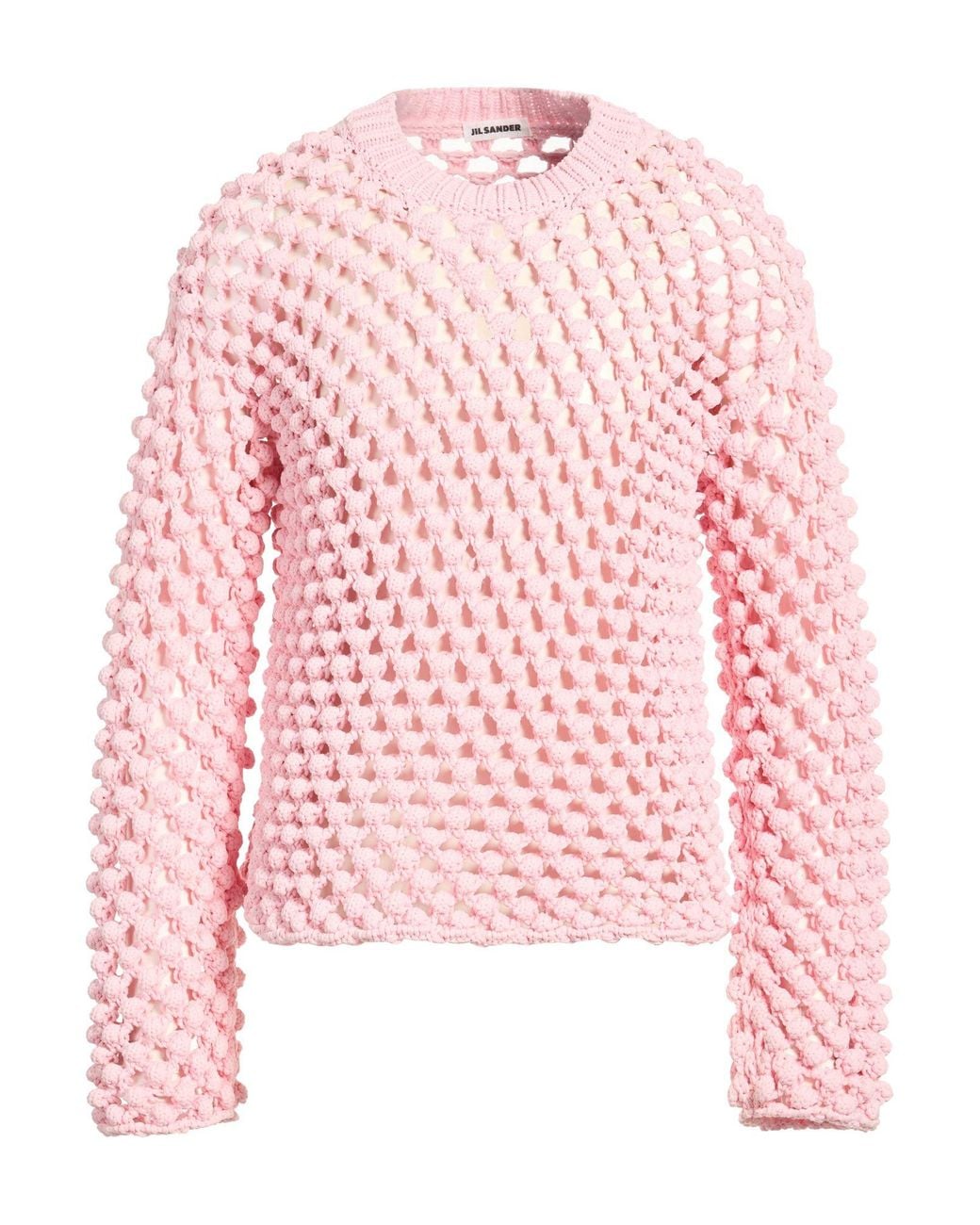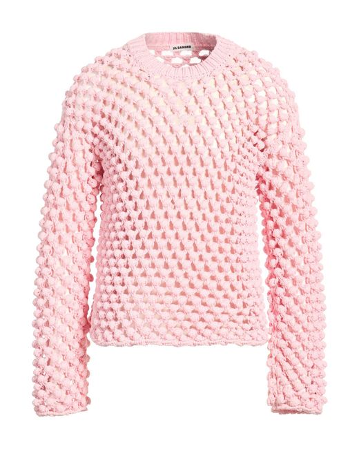 JIL SANDER. knitted, medium-weight knit, no appliqués, plain colour, crewneck, long sleeves, dry clean, do not bleach, do not tumble dry. 100% Polypropylene. Colour: pink