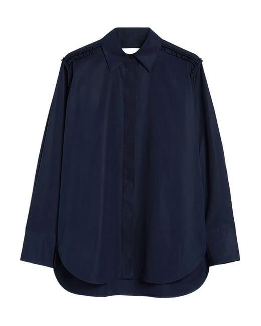Women's Blue Ruffled-Detail Cotton-Poplin Shirt