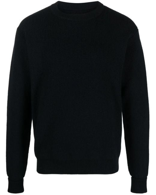 Midnight blue wool knitted construction crew neck extra-long sleeves side zip fastening straight hem Size: 46. Gender: Male. Material:Wool.