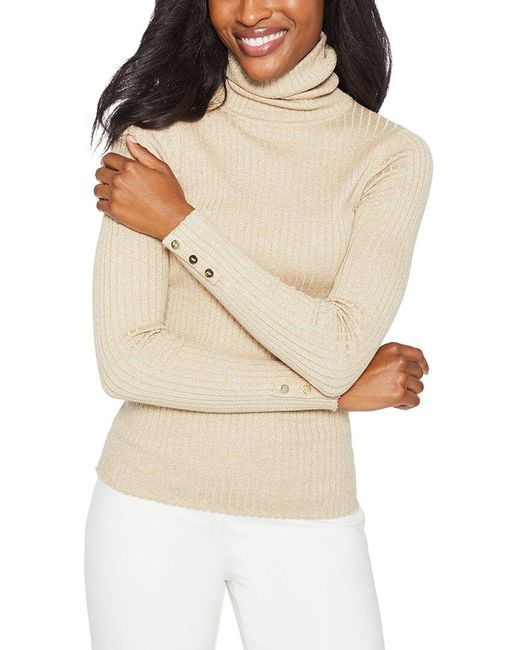 About the brand: Traditional sportswear with stand-out fabrics and prints. Jumper in champagne gold Approximately 24.25in from shoulder to hem 35% Cotton, 25% Modal, 14% Polyester, 13% Nylon, 8% Metallic, 3% Spandex Hand wash Imported Colour: natural