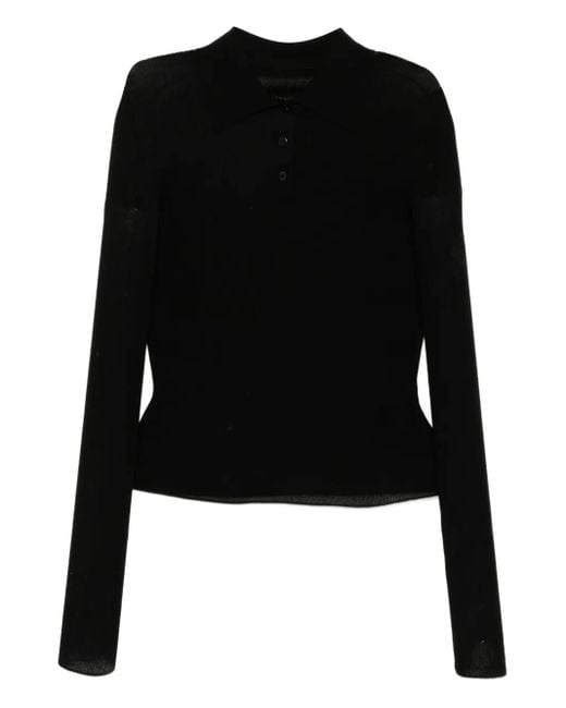 Women's Black Ultra-Thin Long-Sleeved Pullover Knit Top