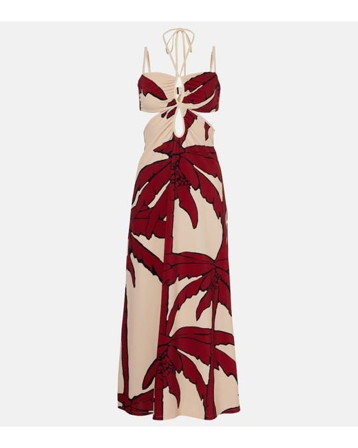 Women's Red Printed Cutout Midi Dress