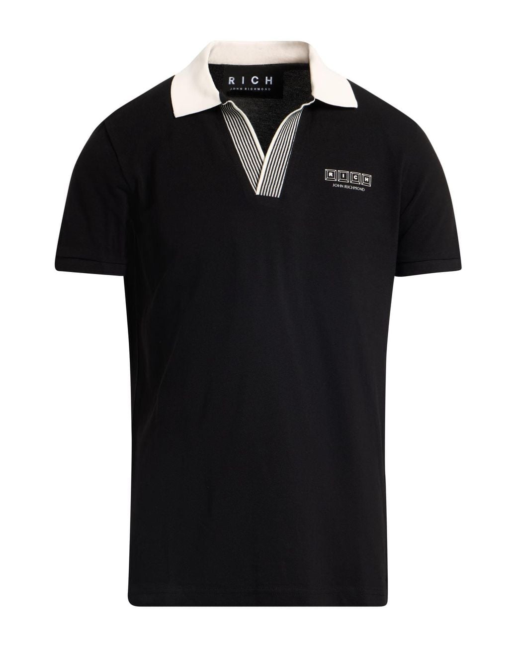 JOHN RICHMOND. piqué, two-tone, brand logo, v-neck, short sleeves, machine wash, do not bleach, do not tumble dry. 100% Cotton. Colour: black
