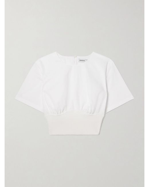 Women's White Adair Cropped Panelled Cotton-Blend Poplin Top