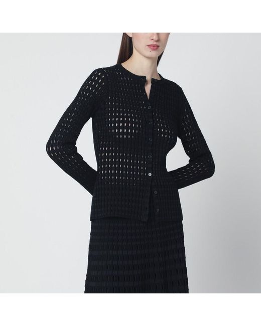 Simkhai black openwork knit crew-neck cardigan featuring long sleeves, front button closure, ribbed trims and a fitted silhouette.Gender: WomenMaterial: 87% Rayon - 13% PolyesterColor: BlackMade in: ImportedProduct ID: 126-6126-KVI/S_SIMKH-BLK*Import tax/duty will be calculated at checkout (If applicable) Colour: black