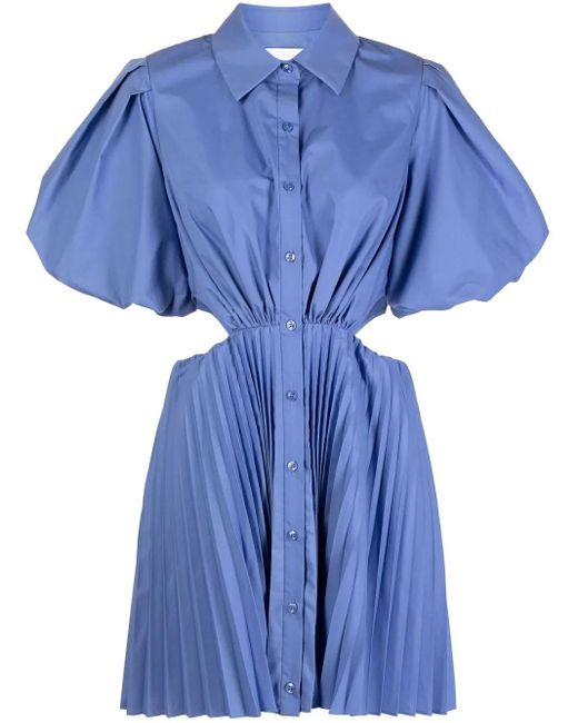 Women's Blue Puff-Sleeve Cut-Out Shirt Dress
