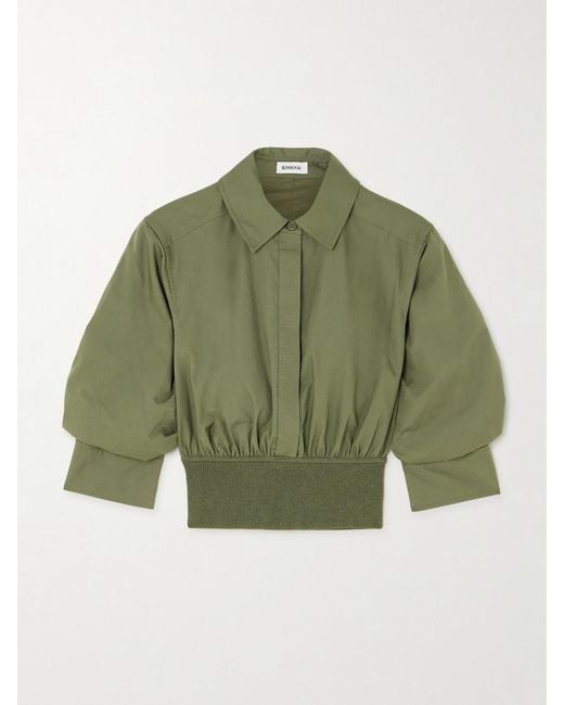 Women's Green Stiles Cropped Gathered Ribbed-Knit Trimmed Cotton-Poplin Shirt