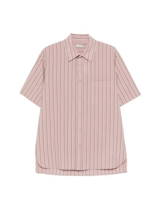 Men's Pink Striped-Pattern Short-Sleeve Shirt
