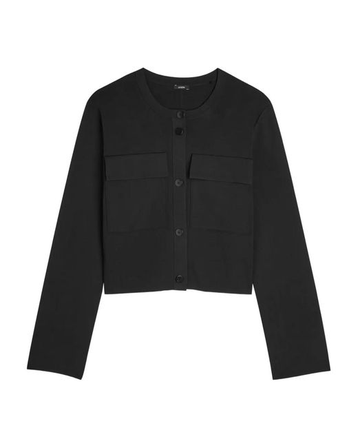 Black button fastening chest pockets long sleeves round neck Size: XS. Gender: Female. Material:Viscose/Polyester/Polyamide/Elastane. Colour: black