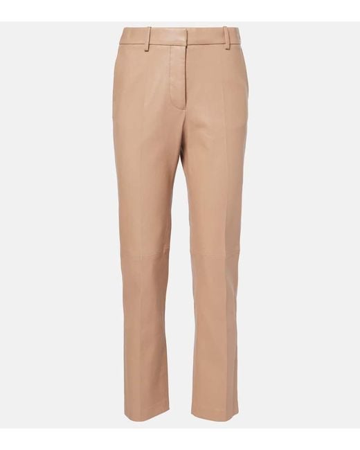 Material: 100% leather. Care instructions: specialist clean. Made in France. Designer colour name: Blusher. Item color: beige. Closure: zip, hook, and button fastening. Pockets: side slit pockets, back pockets. Leather. Colour: natural