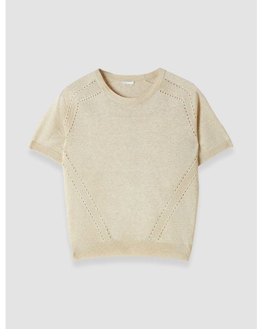 The Lille Lurex Knit Top is a slim fit top, crafted from a blend of viscose and metallic fibre. This festive piece is lightweight with a slight sheerness. It's elegantly finished with pointelle detailing. Colour: natural