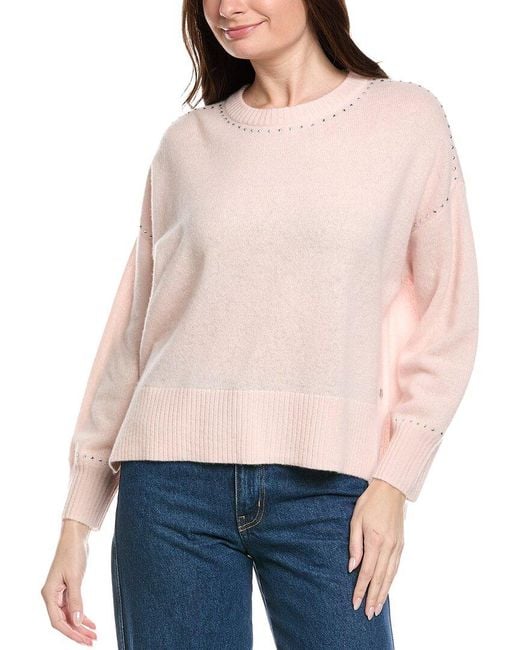 Color/pattern: rose Approximately 26in from shoulder to hem Model is 5'10.5 and is wearing a size medium. Measurements may vary slightly by size. Design details: dropped-shoulder sleeves, rhinestone embellishments, ribbed trim and side slits at hem 100% cashmere Hand wash Imported
