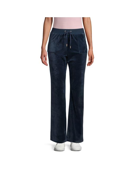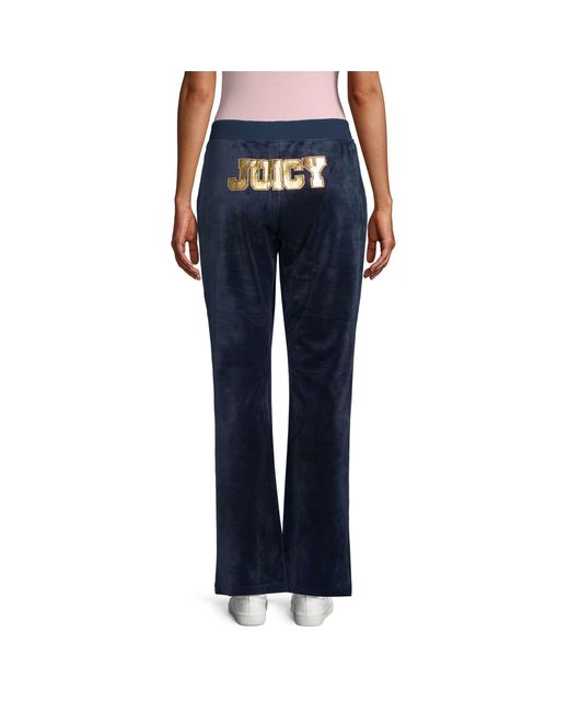Bold metallic Juicy lettering heightens these signature joggers made of plush velvet. Banded drawstring waist. Front patch pockets. Polyester/spandex. Hand wash. Rise, about 11". Inseam, about 30". Leg opening, about 18". Model shown is 5'10" (177cm) wearing U Small. Colour: black